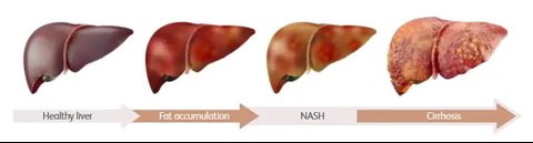 NASH is a progressive liver disease characterized by fat deposits, inflammation, and tissue damage.5 NASH progression leads to the accumulation of scarring, or fibrosis, in the liver, resulting in impaired quality of life.6-8 NASH with significant fibrosis is associated with higher rates of morbidity and death and is expected to soon become the leading cause for liver transplants.9