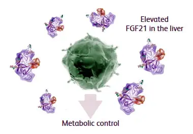 The elevation of FGF21 within the liver may provide protection against disease and studies are underway to investigate if FGF21 treatment can re-establish metabolic balance. Aside from lifestyle modifications such as weight loss, NASH patients currently have no available treatment options.4
